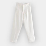 Tyto kalhoty vyzařují decentní eleganci a nenucený styl. S volnou linií a příjemnou texturou jsou ideální volbou pro outfity, které vyžadují eleganci bez přehánění – od rána v kanceláři až po odpolední výlet.