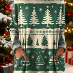 Vánoční svetr Mara je vyroben z měkké směsi bavlny a zdoben klasickým vzorem s motivy jedlí a sněhových vloček. Kulatý výstřih a praktické kapsy zajišťují pohodlný střih, který se příjemně nosí během svátků i při útulných zimních chvílích.
