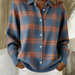 Halenka Mira kombinuje tmavě modrou s teplými rezavými odstíny pro vyvážený a stylový vzhled. Kostkovaný vzor dodává celku klidný, ale moderní vzhled. Klasický límec a zapínání na knoflíky zajišťují nadčasový design, který se hodí k mnoha outfitům.