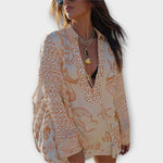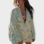 Pozvedněte svůj šatník s naším jedinečným saténovým prázdninovým oblečením, které bez námahy spojuje styl a pohodlí. Tento top do výšky stehenvýstřih do V a dlouhé rukávy, ideální pro uvolněný, ale přesto elegantní vzhled.
