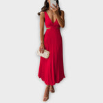 Tyto elegantní plisované večerní šaty pro ženy vám umožní zazářit s bez námahy elegantním vzhledem. Plynulé plisování a elegantní silueta vytvářejí nadčasový vzhled, který lichotí každé postavě. Ať už jde o gala, svatbu nebo speciální večer – tyto šaty vyzařují sebevědomí a šarm.