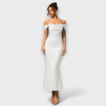 Ione - Šaty Bodycon s odhalenými rameny a řasením