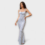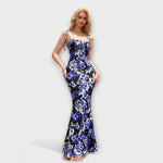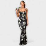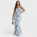 Vystupte s důvěrou v těchto ohromujících maxi šatech, které přitahují pozornost svým krásným květinovým vzorem po celém povrchu. Bez zad a spaghetti ramínka vytvářejí šik siluetu, zatímco nařasená oblast dekoltu dodává nádech sofistikovanosti.