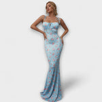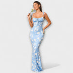 Thalia - Šaty na ples s květinovým potiskem a zavázanými ramínky