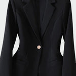 Timeless sako s elegantním střihem, které zdůrazňuje ženskost a styl. Jedno knoflíkové zapínání na přední straně přidává na jemnosti, zatímco kapsy v čistých liniích posilují minimalistický charakter. Ideální pro pracovní vystoupení, ale také pro elegantní večerní výlety.