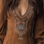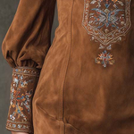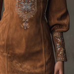 Noble květinová výšivka – dekorativní vzory na výstřihu a rukávech, které dodávají řemeslný vintage šarm.