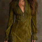 Lunori™ | Mini šaty z nubuku Aurora s krajkou