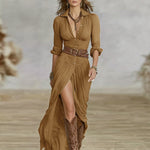 Lunori™ Soléane | Elegantní plisované midi šaty spojují přirozené pohodlí a sofistikované detaily v snadno nositelném kousku od rána do večera. Volný střih lehce následuje pohyby, zatímco definovaný korzet a plisovaná sukně vytvářejí ženskou a harmonickou siluetu. Pasový pásek zvýrazňuje siluetu, aniž by ji stahoval, ideální pro pocit péče v kanceláři, na akci nebo během speciální večeře.