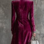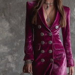 Lunori™ Victoria | Blazer šaty z sametu jsou kousek, který okamžitě přitahuje pozornost. Vyrobeno z cenného sametu s vintage inspirací na knoflících, hlubokým výstřihem a strukturovanými rameny, kombinuje sílu a ženskost v jedné plynulé a sofistikované siluetě. Perfektní pro večerní akce, rafinované večeře nebo zvláštní příležitosti, kdy chcete zanechat nezapomenutelný dojem.