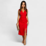 Desi | Přiléhavé šaty s V-výstřihem a rozparkem