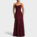 Kairi - Stylové Maxi Šaty s Květinovou Krajkou a Spaghetti Ramínky