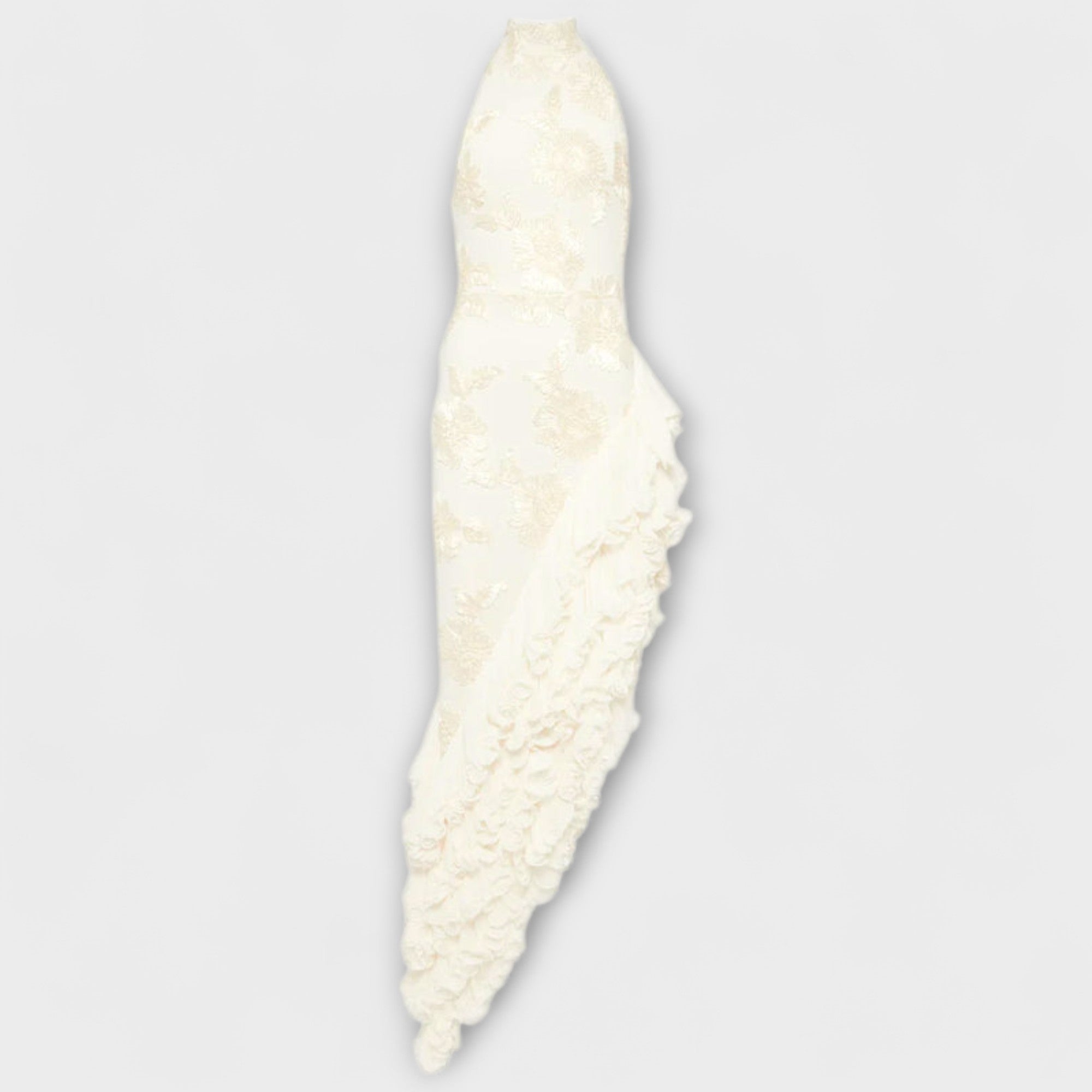 Zažijte éterickou eleganci s našimi maxi šaty, které mají květinové aplikace, ohromující kombinaci romantiky a grácie. Tento okouzlující kousek představuje jemné 3D květinové aplikace, které rozkvétají po splývavém, podlahové délce siluetě.