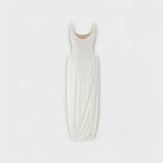 Objevte naše bílé drapované maxi šaty, které mají sochařskou sukni a boční rozparek.
