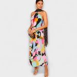 Doplňte svůj vzhled odnímatelným šifónovým šátkem, který se elegantně spouští po otevřeném zadním díle, což dodává každému pohybu nádech dramatičnosti. Ať už se chystáte na elegantní večer nebo kreativní den venku, tyto šaty jsou nadčasovým pokladem ve vašem šatníku.