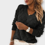 Objevte dámský svetr Eline s V-výstřihem, kde se setkává bez námahy elegantní a nadčasový komfort. S jeho lichotivým V-výstřihem a volným střihem je tento svetr dokonalou kombinací stylu a pohodlí. Ať už se věnujete každodennímu životu, jste v kanceláři nebo si užíváte uvolněný víkendový výlet – svetr Eline je vždy správnou volbou.