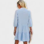 Se jemným modro-bílým kostkovaným vzorem, který vzdává hold vintage stylu, prodyšná tkanina a uvolněná silueta zajišťují, že se budete cítit pohodlně po celý den.
