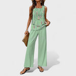 Set Katarína přináší luxus jednoduchosti a pohodlí ve stylové kombinaci. Horní část bez rukávů jemně obepíná postavu, zatímco lehké kalhoty s volným střihem dodávají pocit vzdušnosti a svobody. Vyrobený z kvalitního materiálu s jemným leskem, tento set je skvělou volbou pro pracovní dny, setkání s přáteli či letní večery plné elegance.