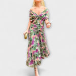 Vstupte do světa elegance s našimi maxi šaty s V-výstřihem a květinovým vzorem Fantasy. Tyto ohromující šaty mají jedinečný květinový vzor, který zachycuje podstatu řemeslné práce a kouzla, což z nich činí ideální volbu pro zvláštní příležitosti.