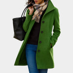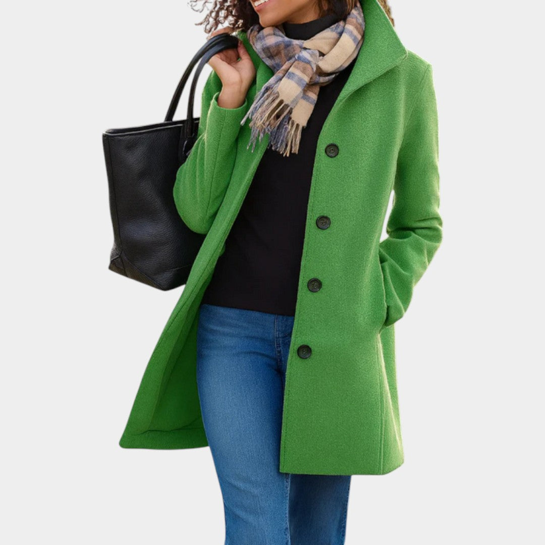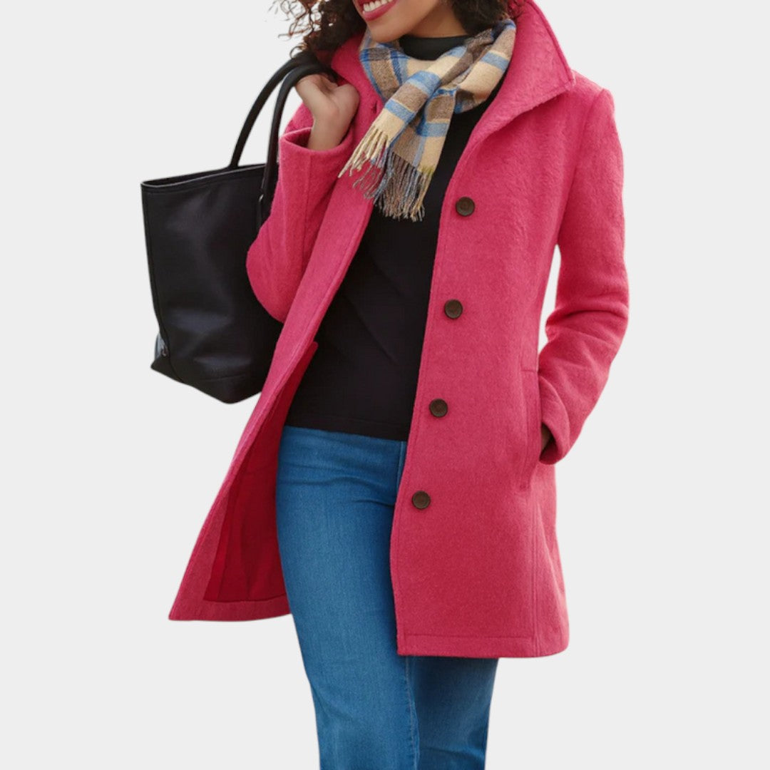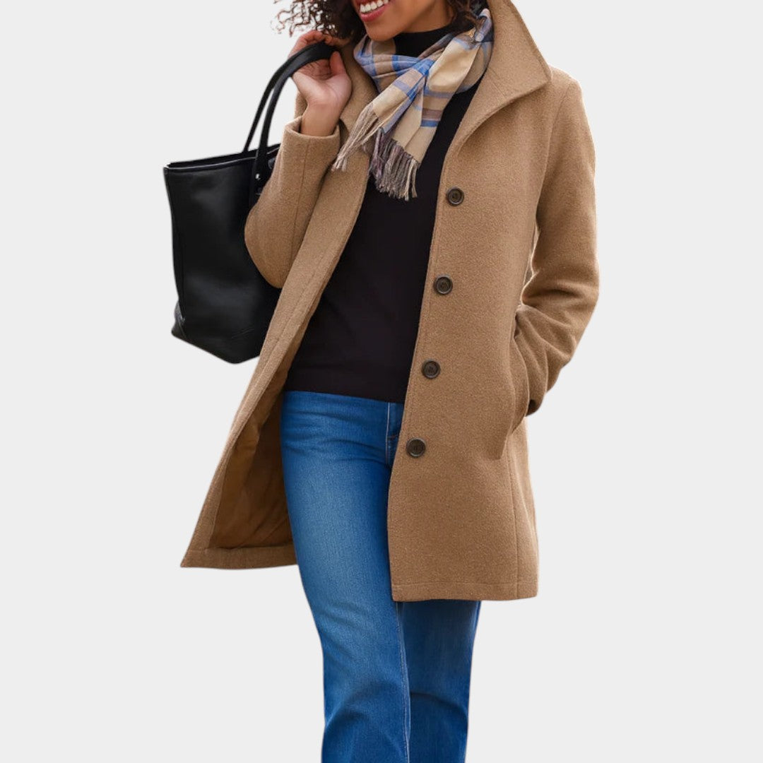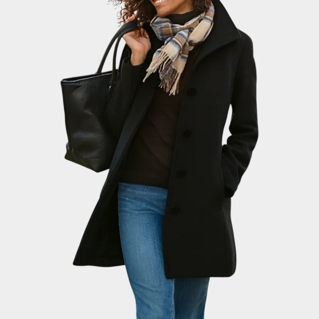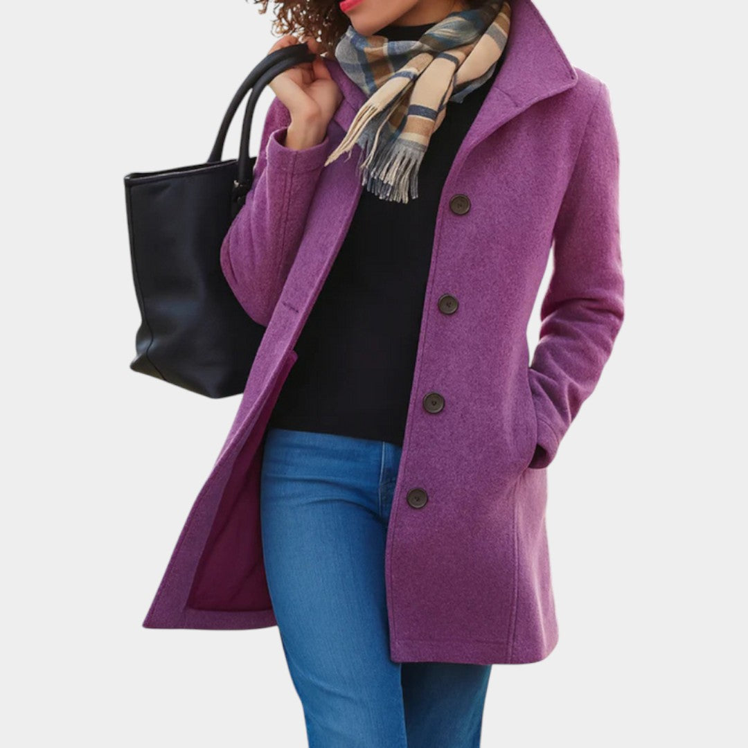 Kabát Klára spojuje nadčasovou eleganci s praktičností každodenního nošení. Díky zapínání na knoflíky, lichotivému střihu a hřejivému materiálu se skvěle hodí jak k neformálním procházkám, tak do kanceláře či na večerní setkání.