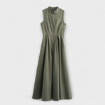 Šaty bez rukávů s plisováním a těsným střihem midi