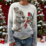 Svetr Suzette dokonale vystihuje vánoční atmosféru díky okouzlujícímu 3D motivu králíčka a ptáčků obklopených svátečními bobulemi. Přirozené detaily dodávají pocit tepla a radosti, což z něj dělá ideální volbu pro útulná setkání. Perfektní spojení hravosti a elegance pro vánoční období.